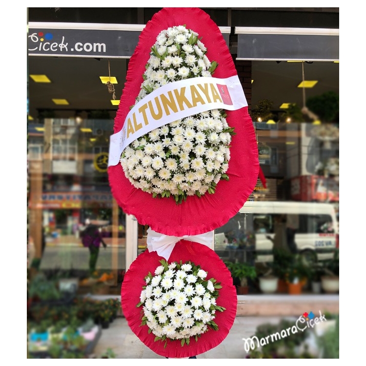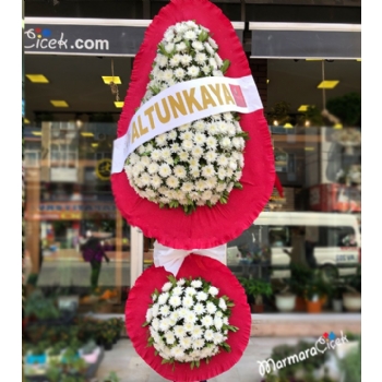 BEYAZ GERBERA ÇİFT GÖBEKLİ ÇELENK